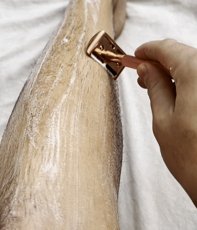 For example, with a 3-blade cartridge razor, if you go over the same area three times, you’re exposing your skin to 15 passes of a blade. In contrast, with the Camelie razor, each pass is with just one sharp, durable blade. The fewer times your skin is exposed to the blade, the less irritation you’ll experience, and the reduced risk of ingrown hairs leads to smoother, healthier skin.